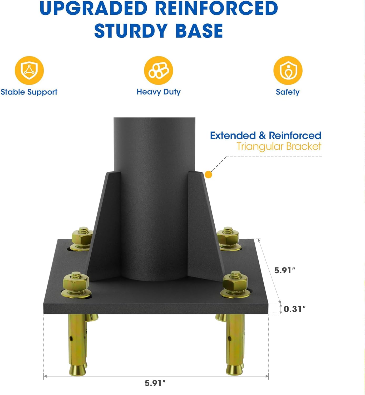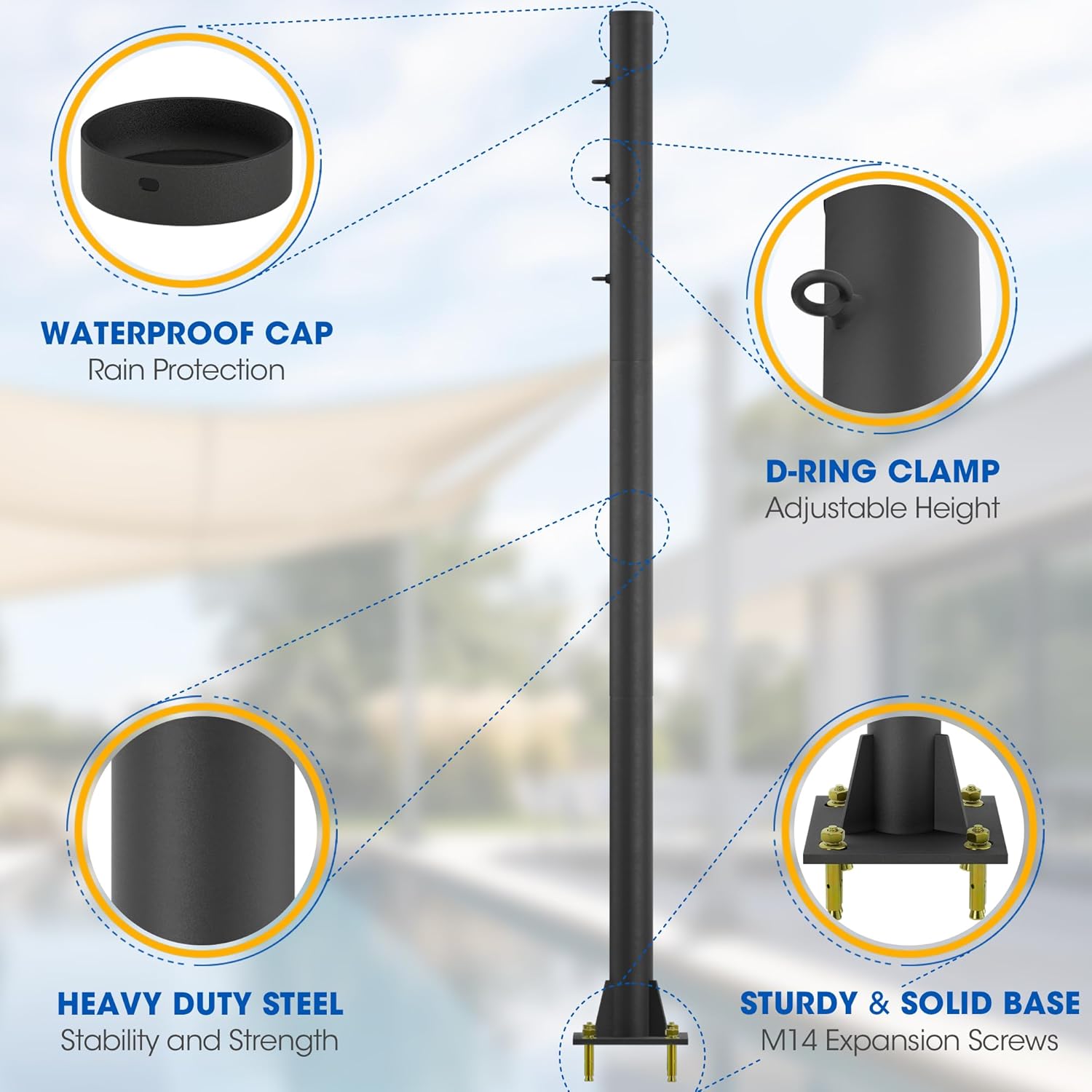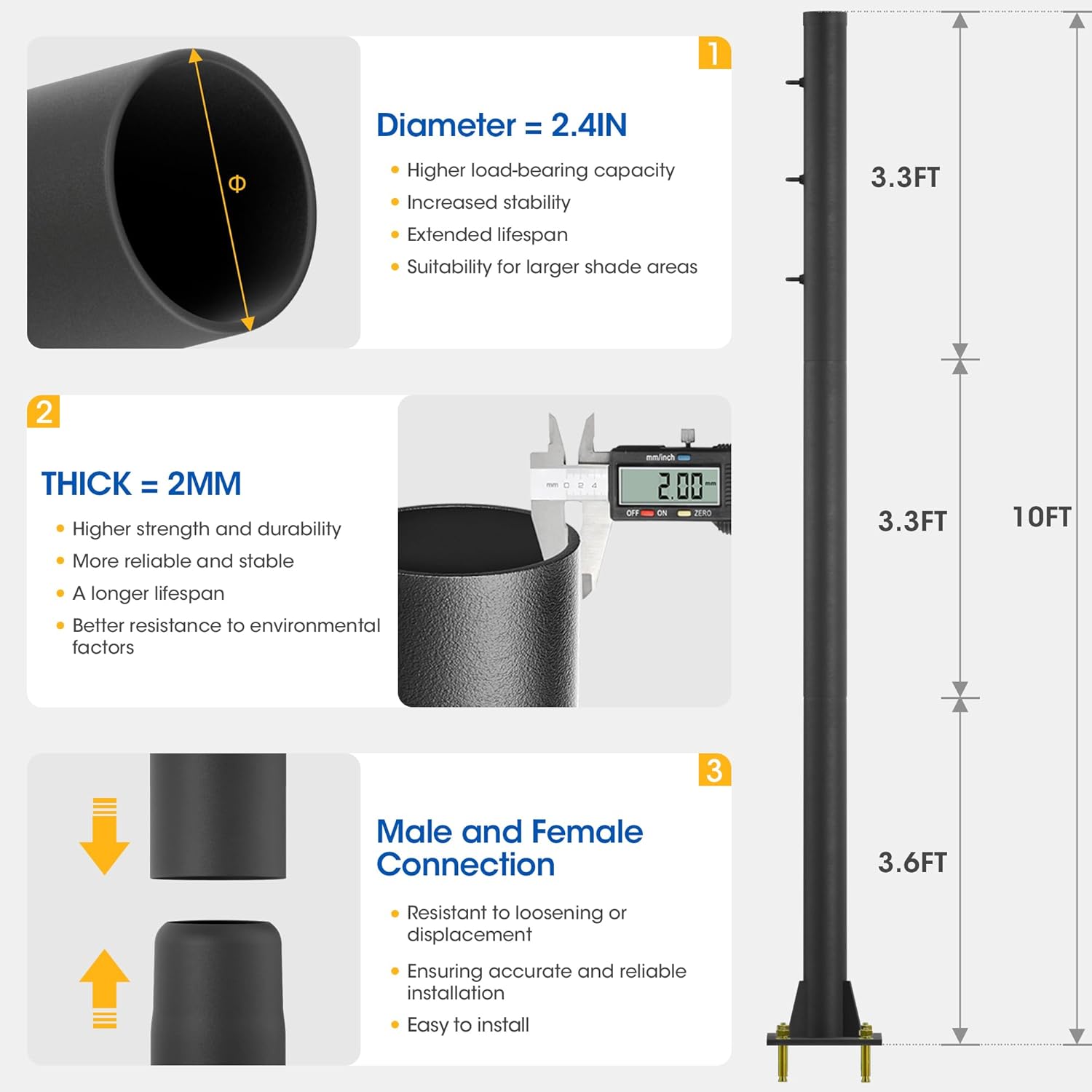 2 Pack Shade Sail Poles, 10 FT Outdoor Sun Shade Poles for Deck, 2.4" Diameter Steel Heavy Duty Shade Pole Kit for Outdoor Shade in Ground and Backyards, Patio, Deck, Black Three Ring Sun Shade Pole