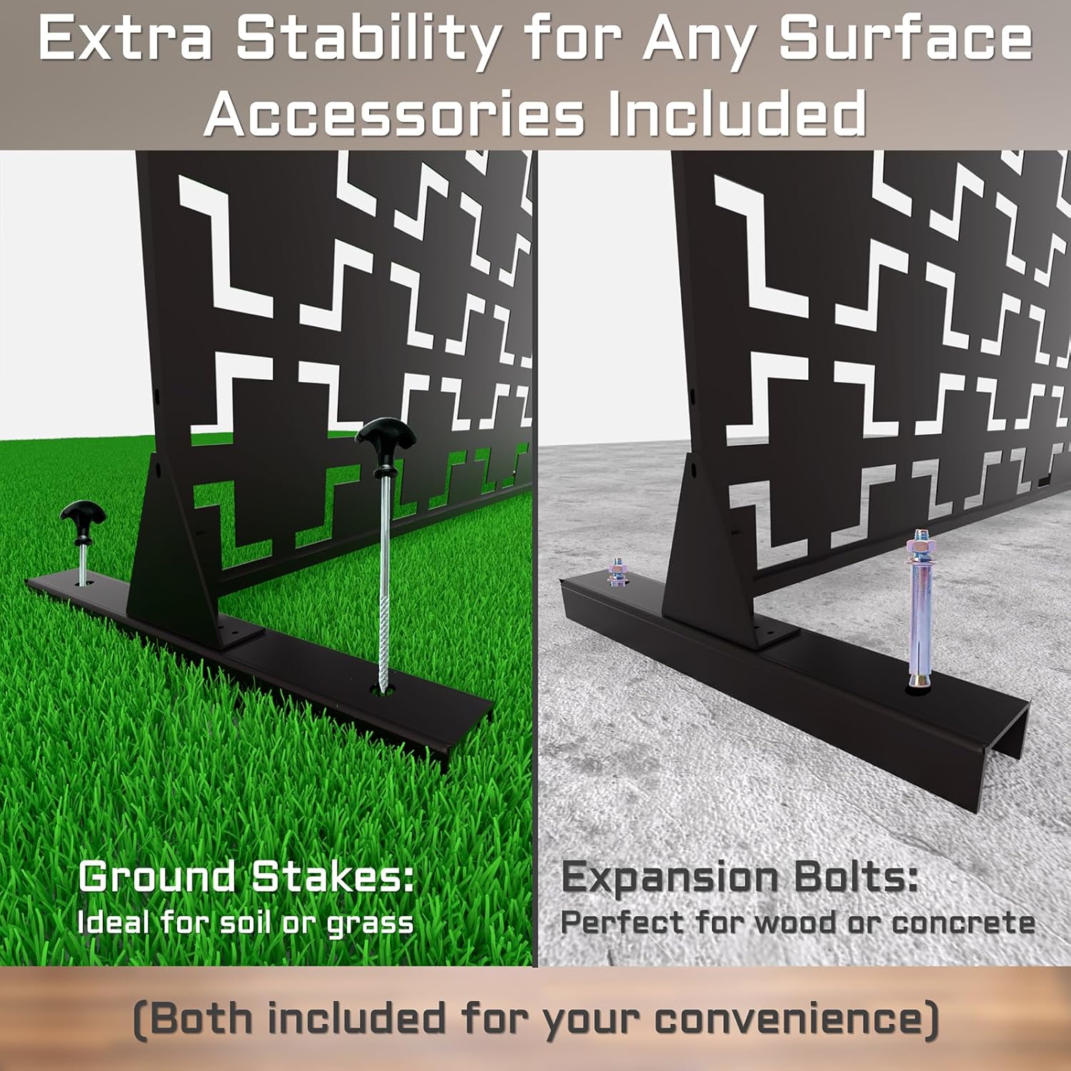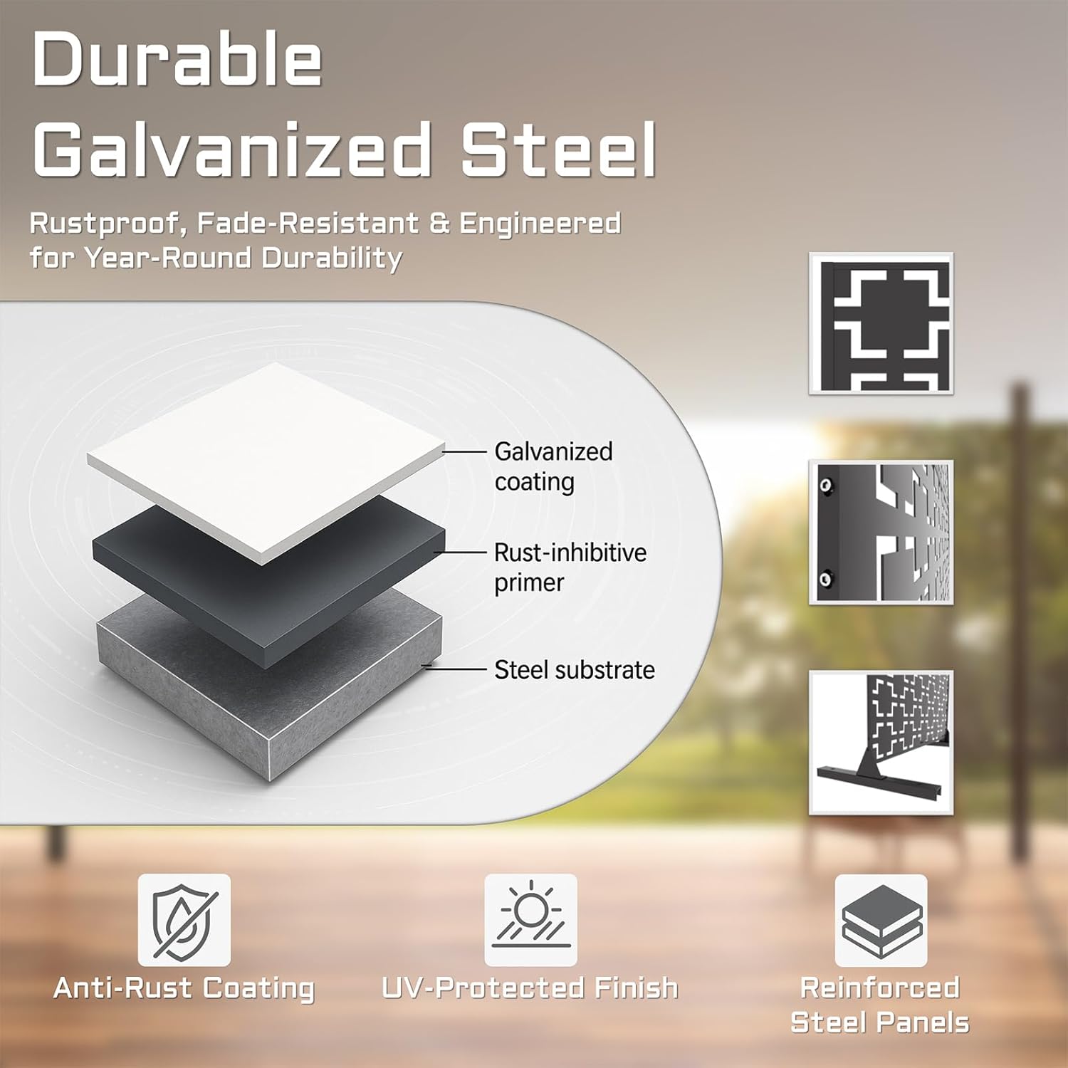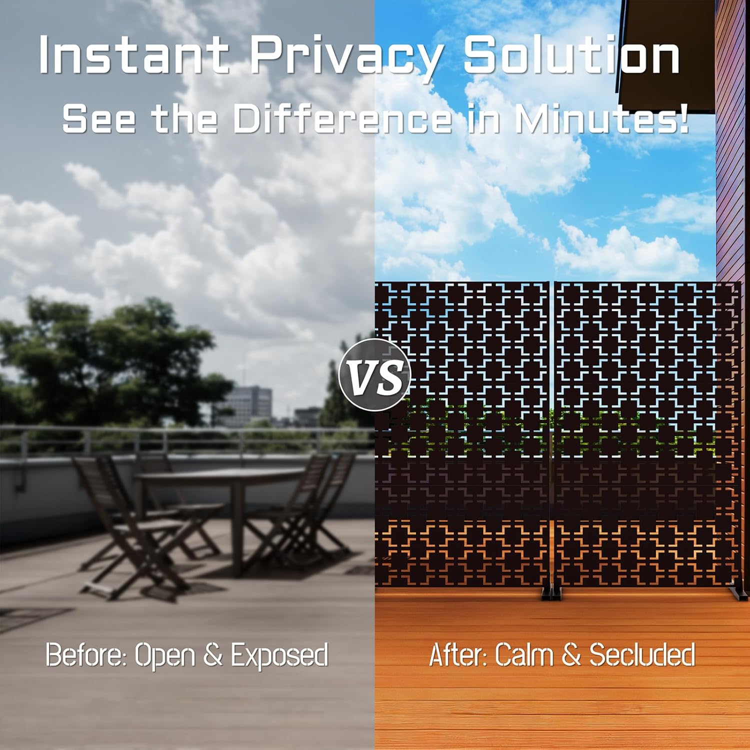 72" Metal Privacy Screen Freestanding Outdoor Room Divider Decorative Laser Cut Fence Panel, Weatherproof Patio Privacy Fence for Garden, Balcony, Backyard Landscape