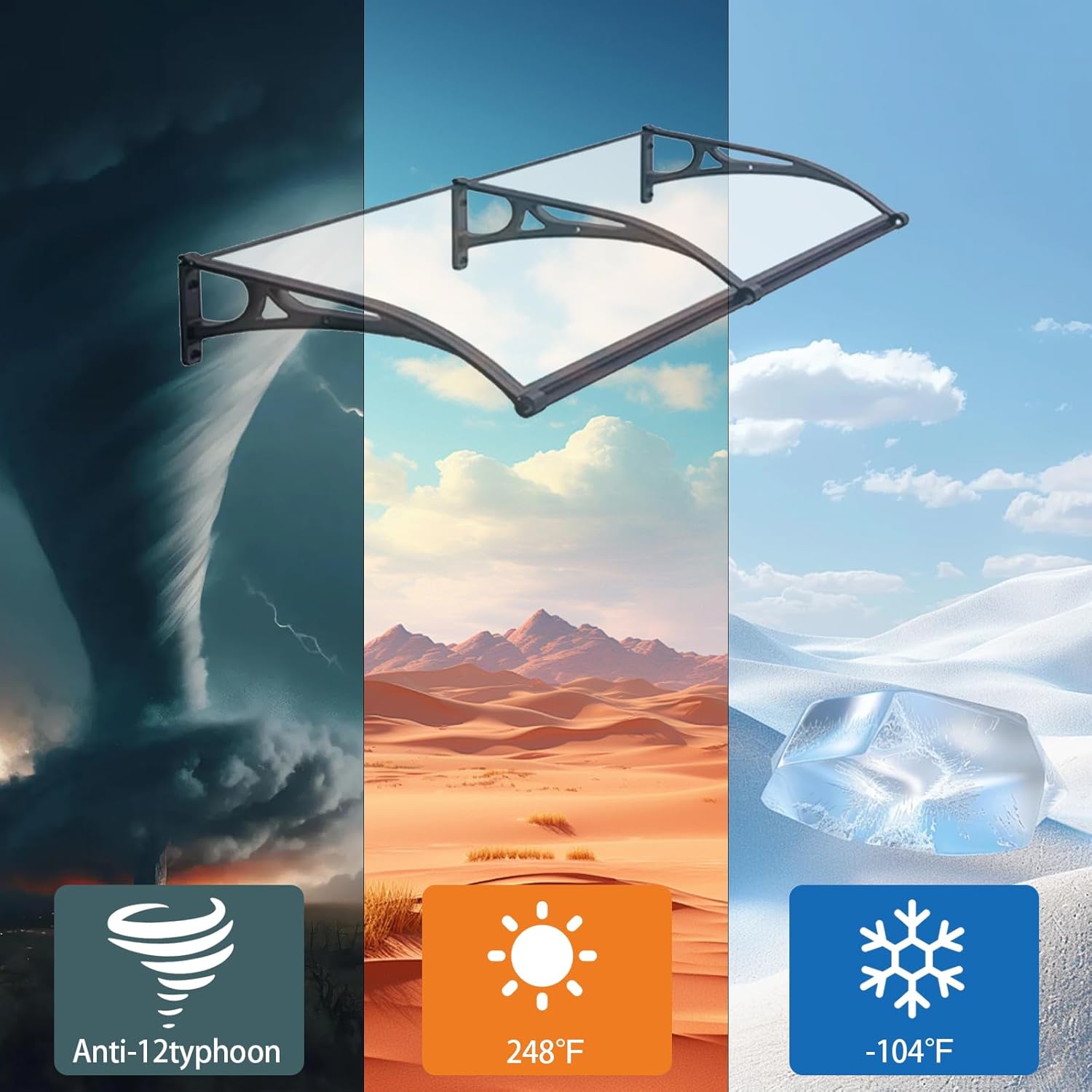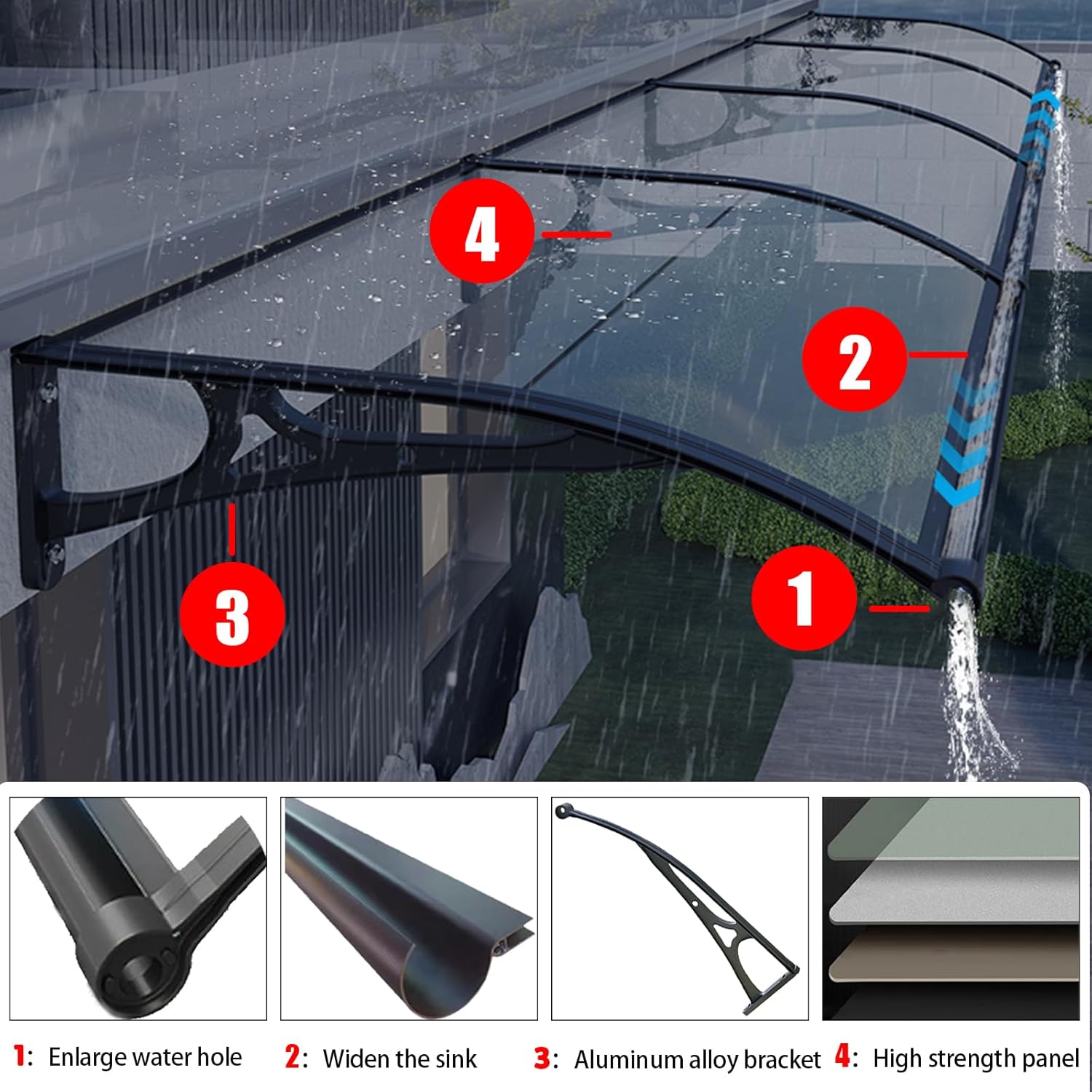 Awnings for Windows Outside, Aluminum Bracket awnings, Black Bracket awnings, Suitable for terraces, Bedroom Windows, rain and Snow Protection, Sunshade, Easy to Install-Smoke gray-80x140cm/32x55in