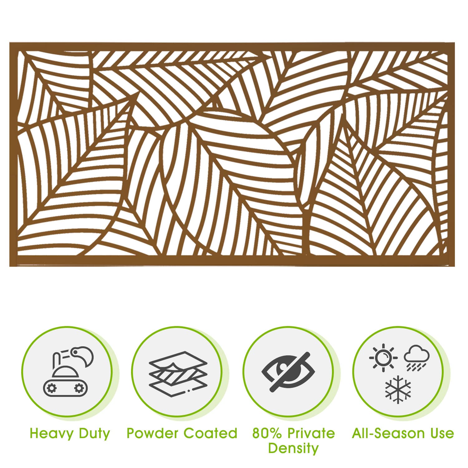 Casaphoria 72" H x 47" W Metal Outdoor Privacy Screen, Freestanding Decorative Divider for Patio, Deck, Balcony, and Garden with Stable Base, Brown Leaves