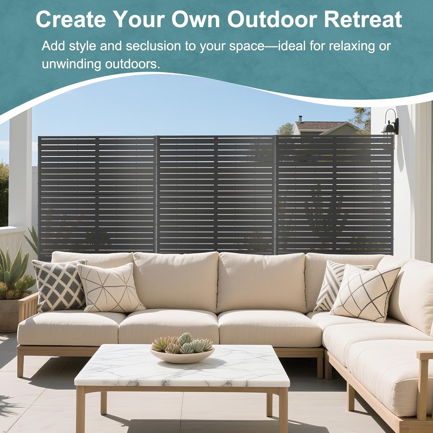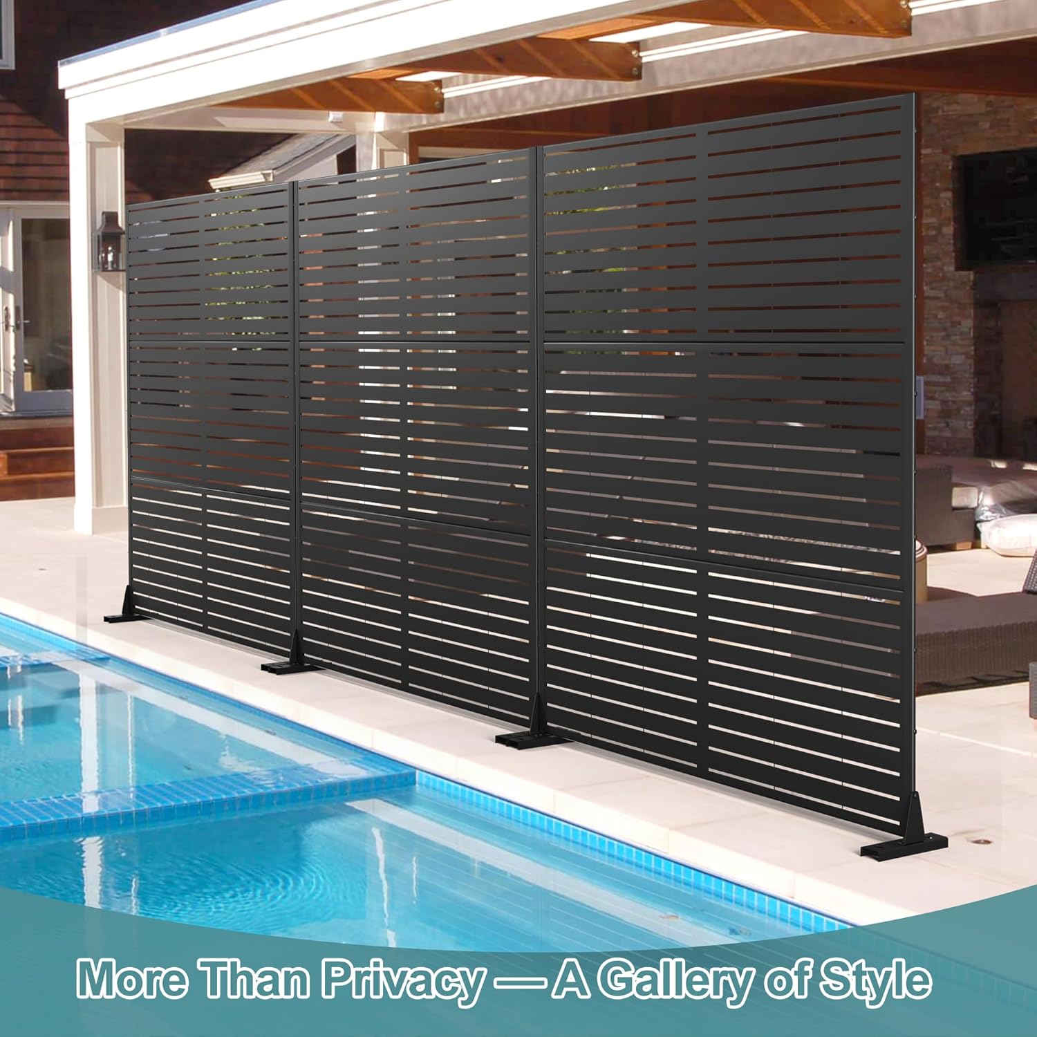 Metal Privacy Screen Outdoor Freestanding Privacy Wall Panels and Decorative Patio Dividers, Crafted from Steel with Sun-Proof Design, Ideal for Patio, Deck, Garden,72"H×47"L(Black&Louvered)