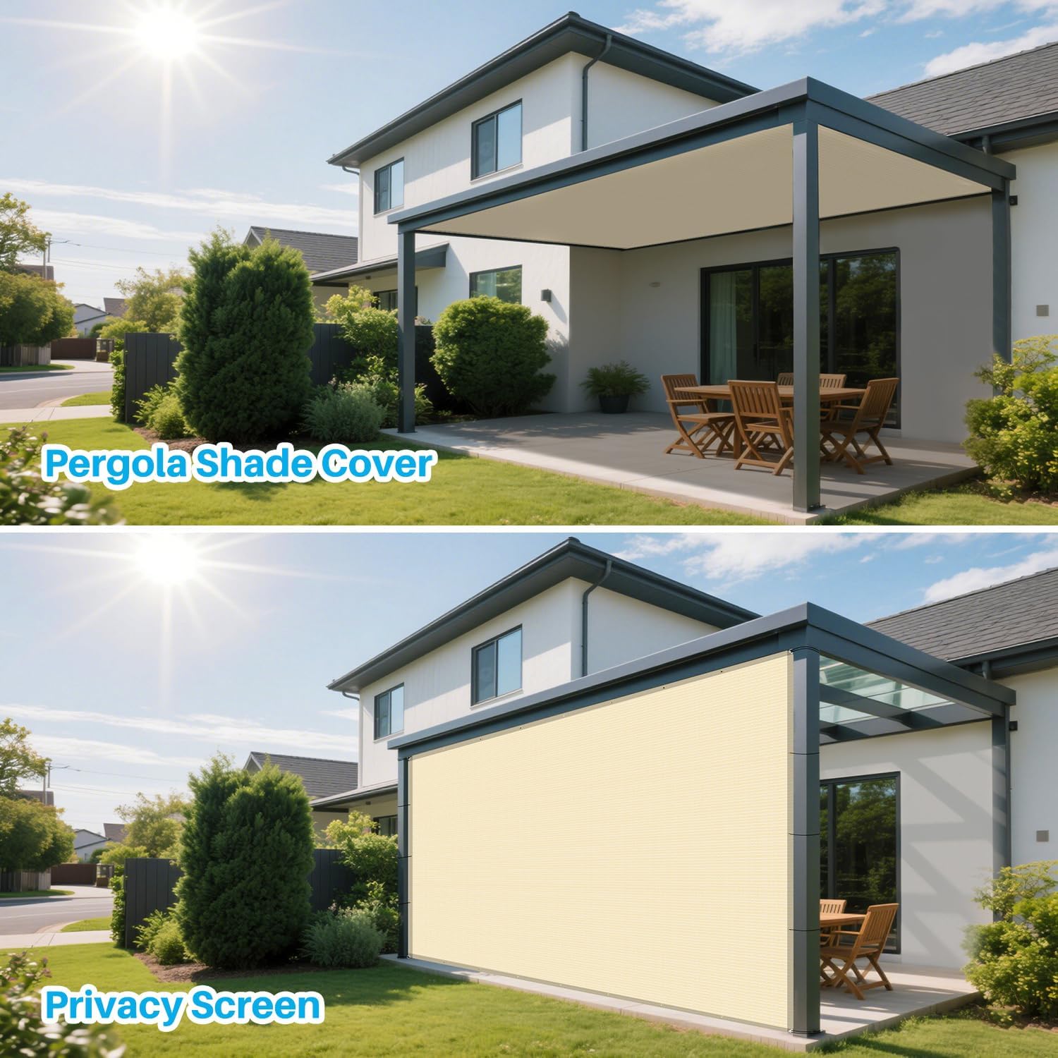 We provide a wide range of outdoor shade products, such as sun shade sails, privacy fence screens, roll up shades and sorts of, suitable for your patio, deck front yard, backyard, etc.
