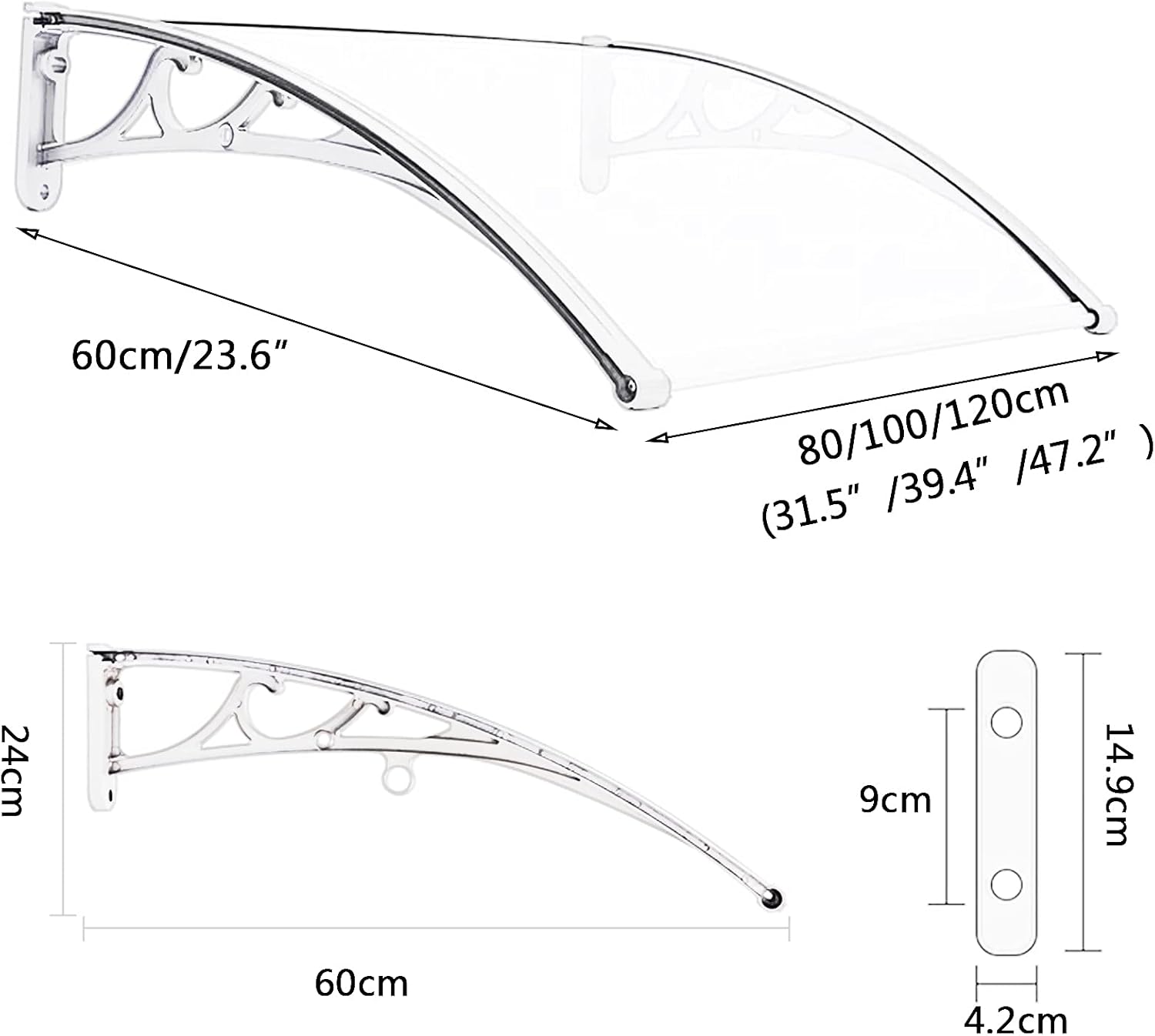 Our outdoor door and window awnings are designed for a wide range of uses. They can be used as door awnings, window awnings and balcony covers, and are ideal protection against various weather factors. Combining modern appearance and function, this canopy is not only a functional covering, but also an ornament for your living space. This must be installed on a masonry or concrete wall.